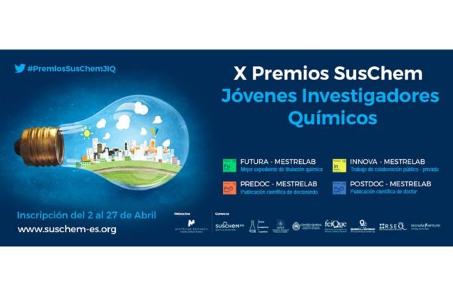 Las cuatro categorías de los premios SUSCHEM Jóvenes Investigadores Químicos 2018 otorgan un reconocimiento público a la labor de los jóvenes investigadores españoles en el ámbito de la Química. El plazo de admisión de solicitudes es del 2 al 27 de abril.