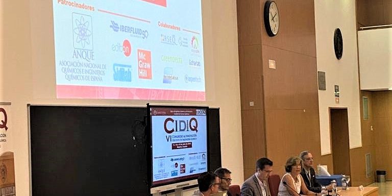 La Asociación de Químicos e Ingenieros Químicos de España, estuvo presente en la ceremonia de apertura del día 11, inaugurada por Ricardo Díaz Martín (Director General de Universidades y Enseñanzas Artísticas Superiores de la CAM). Contó, además, con la asistencia de Jorge Jesús Gómez Sanz (Vicerrector de Tecnología y Sostenibilidad UCM), María Teresa Villalba Díaz (Decana de CC. Químicas UCM), Ángel Gómez Nicola (Decano de CC. Físicas UCM) y Francisco Rodríguez Somolinos (Presidente del Comité Organizador VI CIDIQ).