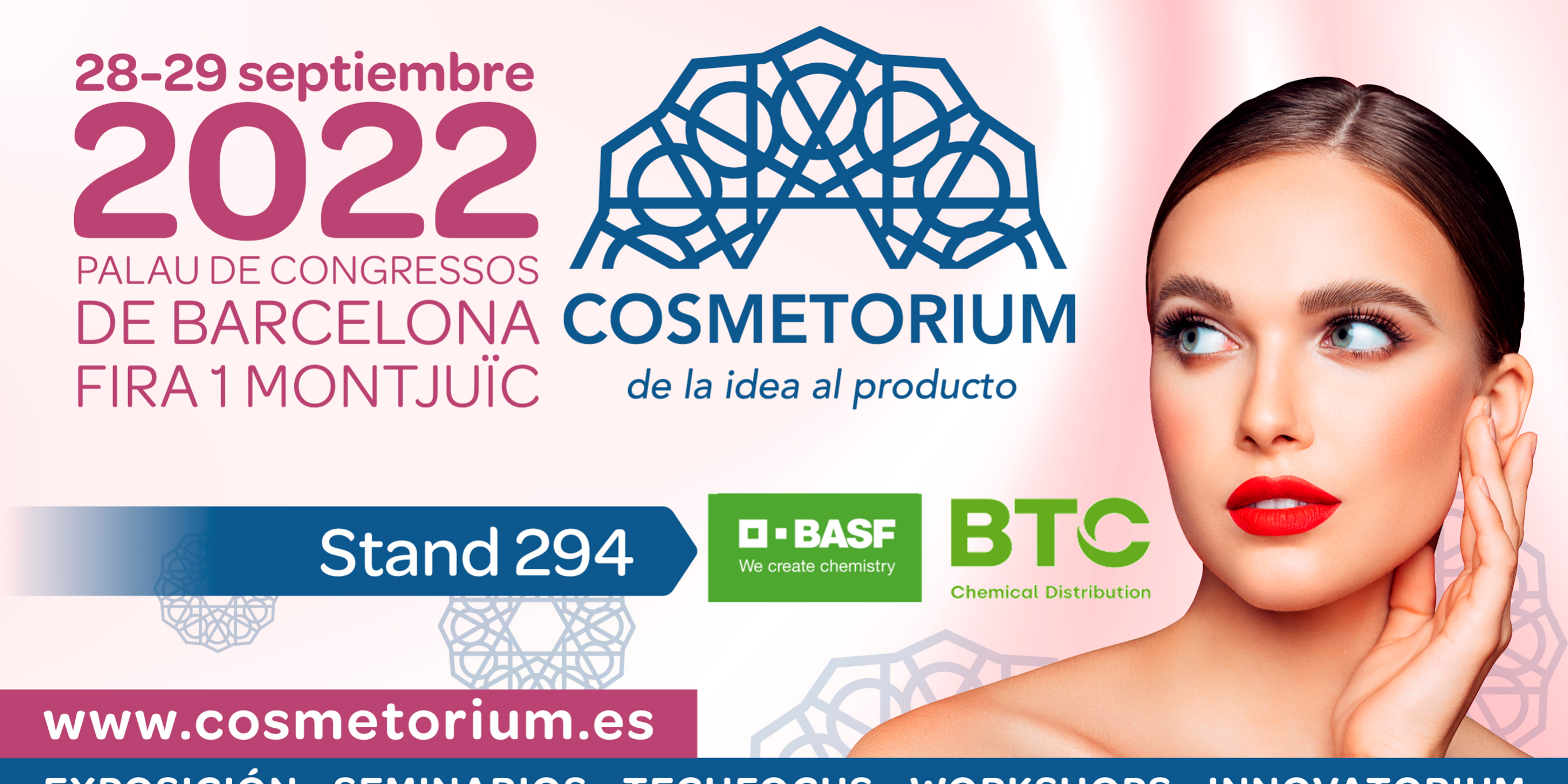En esta sexta edición de Cosmetorium, que se celebrará en Barcelona los días 28 y 29 de octubre, BASF, junto con su organización de distribución europea BTC Europe, BASF compartirá el estand 294 y presentará sus últimas soluciones para el sector del cuidado personal. Este año, BASF’s Care Creations® se centrará en soluciones alternativas a ingredientes que se han venido usando en la cosmética hasta hoy en día, alternativas enfocadas a una cosmética “Clean Beauty”, más sostenible y natural.