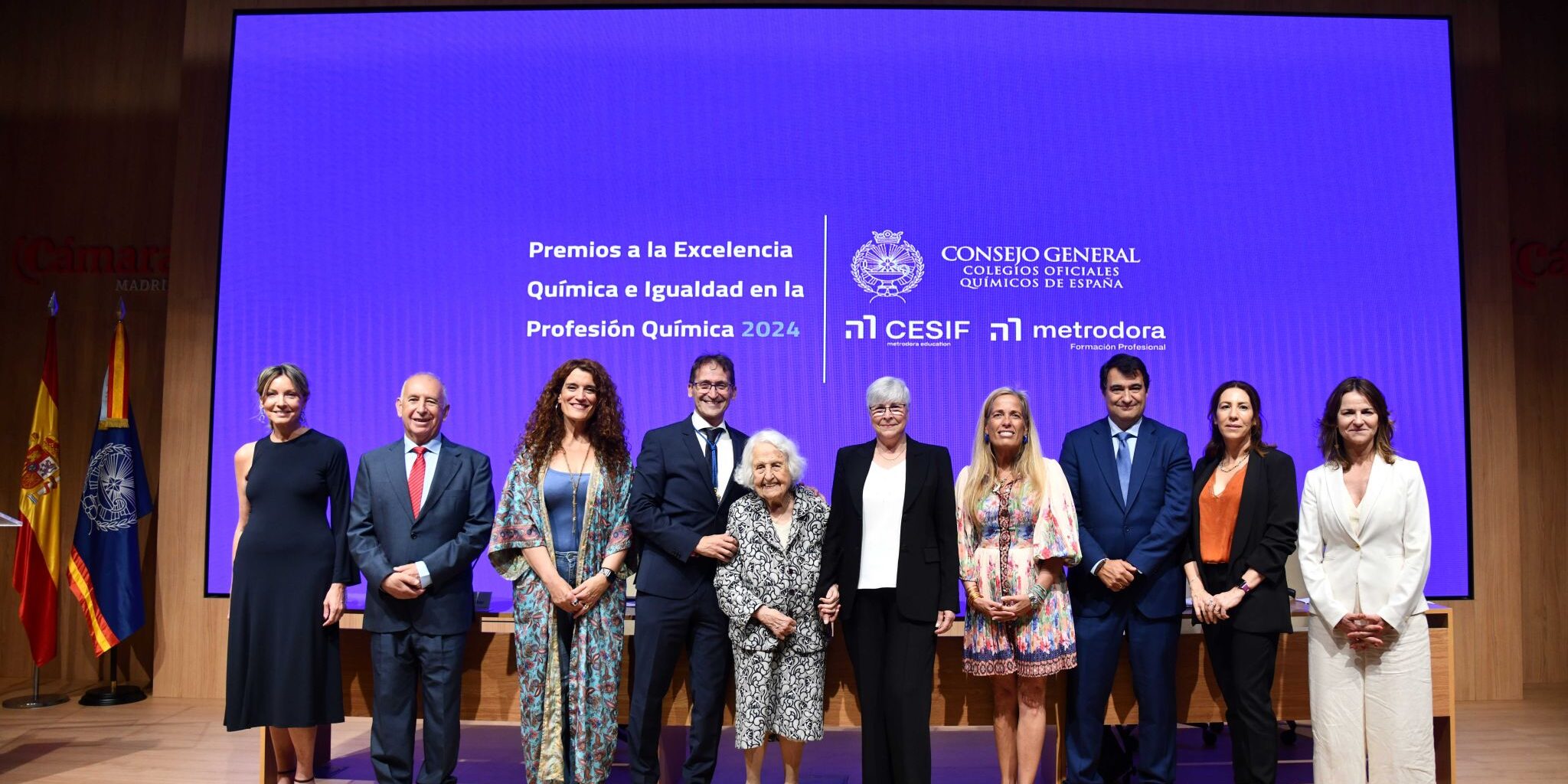 En su discurso de clausura, Ricardo Díaz, presidente del Consejo General, ha subrayado el valor ejemplar de las galardonadas: “Juana y Esperanza son mujeres de mérito contrastado, mujeres que han ganado todo con enorme esfuerzo y constancia, en unos tiempos, en los que las mujeres tenían casi imposible crecer profesionalmente.” El presidente también ha querido destacar la importancia estratégica de la química, no solo como motor económico, sino como fuerza transformadora de la sociedad: “Hoy más que nunca, la química es motor de desarrollo, de innovación y de sostenibilidad. La industria química española representa cerca del 6 % del PIB nacional, genera más de 816.000 empleos directos e indirectos, y lidera el ranking exportador español, con cerca de 59.000 millones de euros vendidos al exterior. Pero más allá de los datos económicos, la química transforma vidas: está presente en los avances médicos, en la energía limpia, en la alimentación segura, en los materiales sostenibles. Es la base tecnológica del 98 % de los procesos industriales y concentra el 25 % de toda la inversión privada en I+D+i, con más de 2.000 millones de euros anuales destinados a investigación.” La ceremonia ha sido conducida y clausurada por Beatriz Martínez de la Riva, directora de Relaciones Institucionales de metrodora FP, patrocinador del acto junto a CESIF-metrodora.