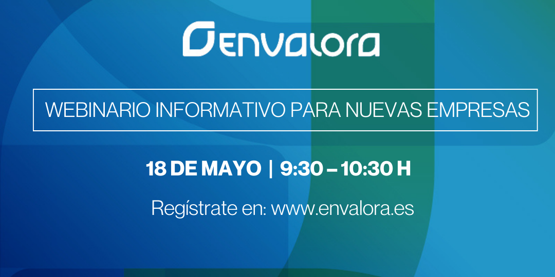 - Envalora organiza el próximo 18 de mayo a las 9:30 h, un webinario abierto para nuevas empresas de diversos sectores industriales.