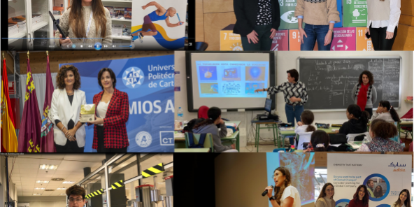 Evento “Quiero ser ingeniera”: Desde 2021 SABIC participa en el programa ‘Quiero ser ingeniera. Esta iniciativa de la Universidad Politécnica de Cartagena (UPCT) pretende dar visibilidad y desarrollar el talento femenino en las profesiones STEM (Science, Technology, Engineering and Mathematics). Se trata de una sesión en la que profesionales con puestos de responsabilidad, de diferentes compañías, acompañarán compartiendo su experiencia y puntos de vista, a jóvenes estudiantes para motivarlas a considerar esta rama como una opción de carrera profesional. Las mujeres no sólo podemos, sino que debemos estar en todas partes”, transmitió a las asistentes la ingeniera química Rocío Morales. “Nuestro destino no está escrito y debemos ir a por todas”, añadió la también ingeniera de operaciones en SABIC Cristina Martínez-Espejo. La manager de logística Almudena García, recomendó a las estudiantes “incrementar conocimientos y habilidades para multiplicar las oportunidades”.
