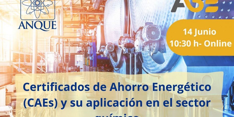 El día 14 de junio, ANQUE en colaboración con A3E, organiza un webinar destinado a llevar el nuevo sistema de Certificados de Ahorro Energético (CAEs) a profesionales y empresas del sector químico.
