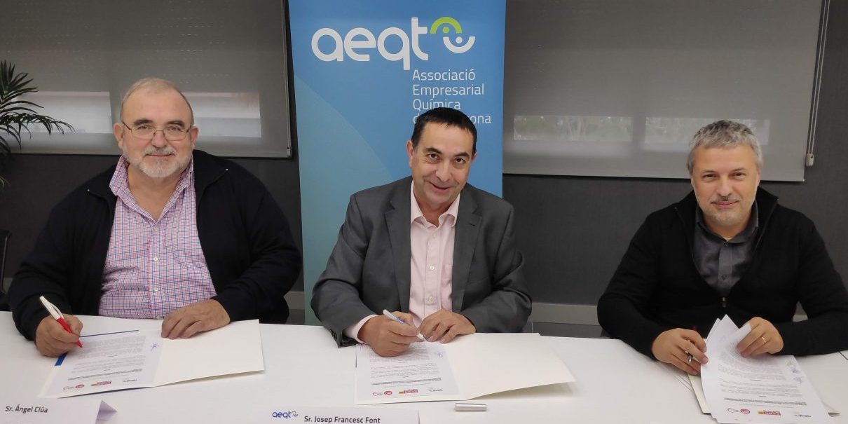 La Asociación Empresarial Química de Tarragona (AEQT) y los sindicatos CCOO de Industria y UGT-FICA han firmado este martes un nuevo acuerdo bilateral que renueva y amplía el que estaba vigente, que databa del año 2003. El documento lo rubricaron el presidente de la AEQT, Josep Francesc Font, el secretario general de CCOO de Industria de Tarragona, José M. Martín Álvarez, y el secretario general de UGT-FICA de Tarragona, Àngel Clúa. El acto, al que además de los firmantes han asistido también miembros de la junta directiva de la AEQT y de los dos sindicatos, ha tenido lugar en la sede de la asociación.