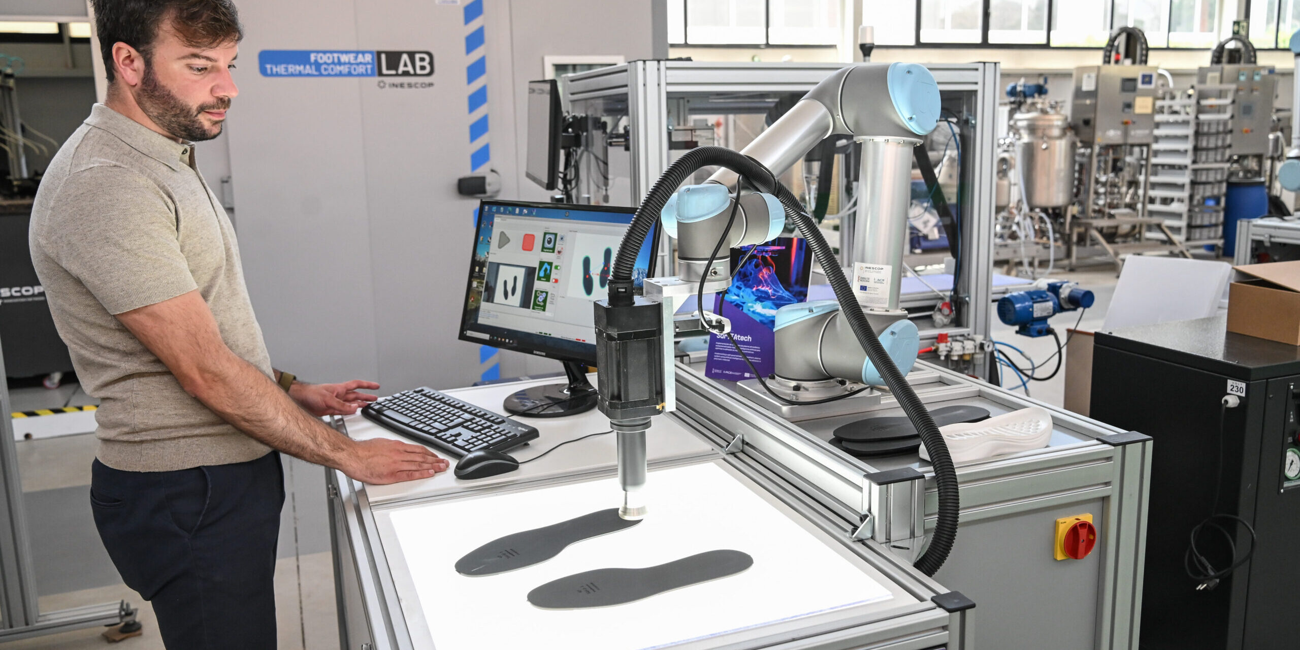 “La tecnología de plasma atmosférico nos permite aplicar recubrimientos funcionales en diferentes superficies reduciendo el uso de productos químicos y mejorando la sostenibilidad del proceso” ha explicado el investigador en Materiales Avanzados y Adhesivos de Inescop, Víctor Serrano. “Además, su compatibilidad con materiales porosos y flexibles como cuero, papel o textil abre nuevas posibilidades para sectores industriales como el calzado que buscan alternativas a los PFAS sin perder prestaciones”, ha añadido Serrano.