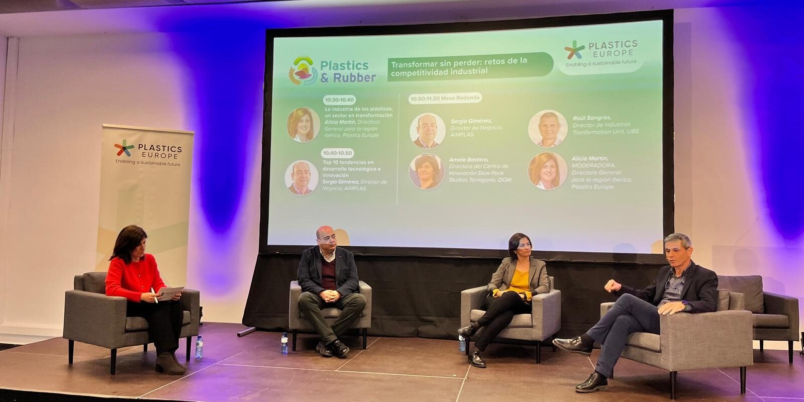 En la mesa redonda, Alicia Martín y Sergio Giménez han sido acompañados por Amaia Bastero, Directora del Centro de Innovación de Dow Pack Studios Tarragona, y Raül Sangròs, Director de Industrial Tranformation Unit de UBE. Se ha abordado el reto que supone seguir invirtiendo en circularidad y descarbonización en un contexto de competitividad europea debilitada. Además, de la mano de proyectos concretos, han mostrado como la innovación sostenible con plásticos está ayudando a muchos otros sectores a avanzar en sus propias transiciones, reforzando así el carácter esencial de los materiales plásticos para la economía y sociedad.