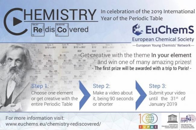 Abierto el plazo de participación en el concurso Chemistry Rediscovered organizado por el European Young Chemists Network de EucheMs en honor al #IYPT2019 que invita a jóvenes de entre 12…