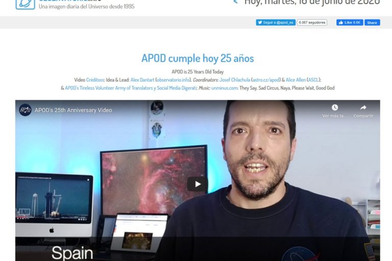 Una historia inspiradora de amor a la ciencia: Un astrónomo aficionado zaragozano ha traducido durante 25 años la imagen de astronomía diaria de la NASA (APOD) que cumple su 25 aniversario