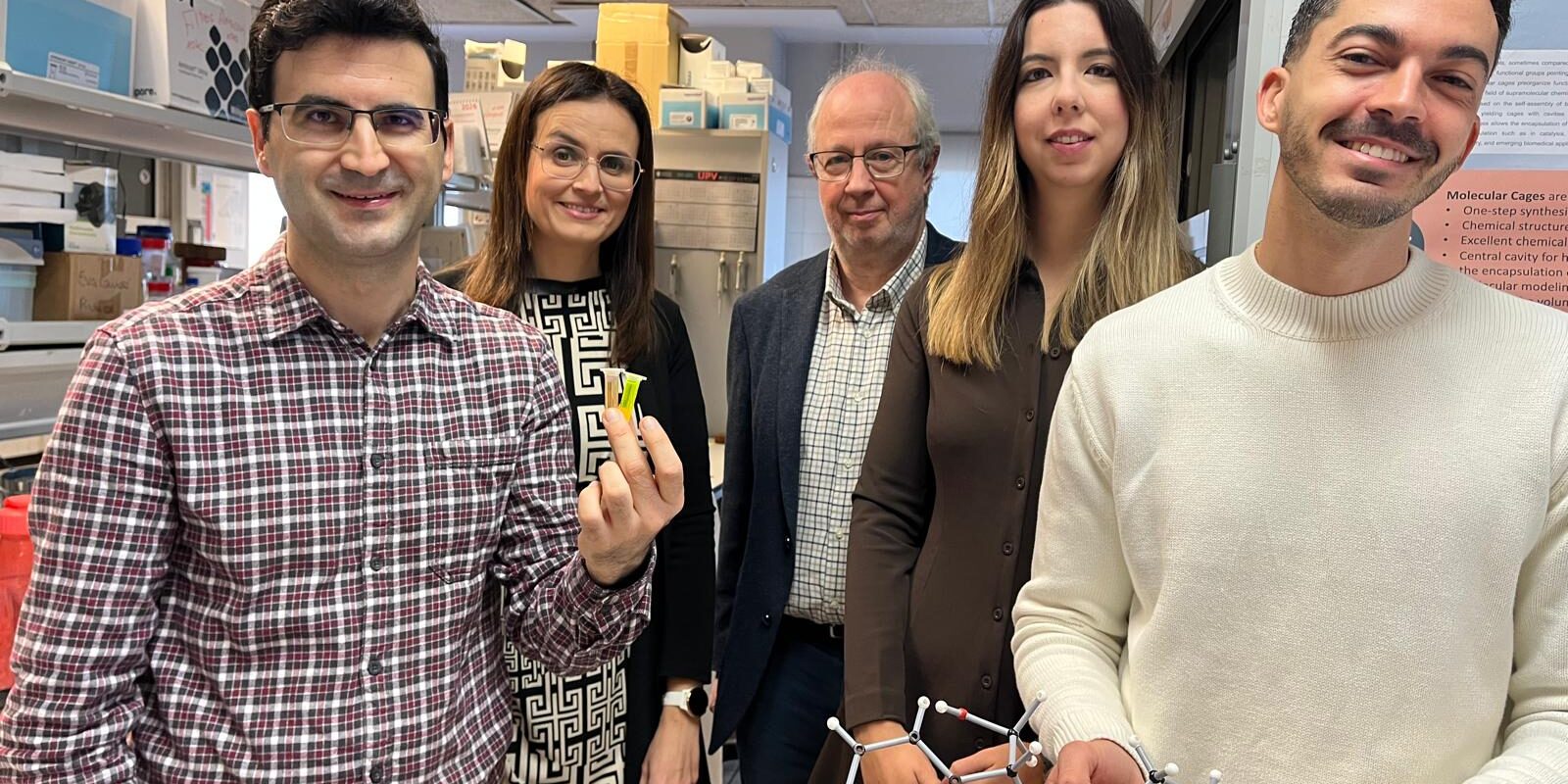 Uno de los aspectos más novedosos del sistema es la sofisticación de su diseño químico. La caja molecular adopta una disposición única que resulta clave para que el proceso de detección de la droga funcione con gran precisión. «Esto es lo que permite que nuestro sensor detecte cantidades muy bajas de droga y que sea especialmente útil para el análisis rápido de sustancias sospechosas, tanto en contextos preventivos como tras una posible agresión», destaca Giovanni Montà-González.